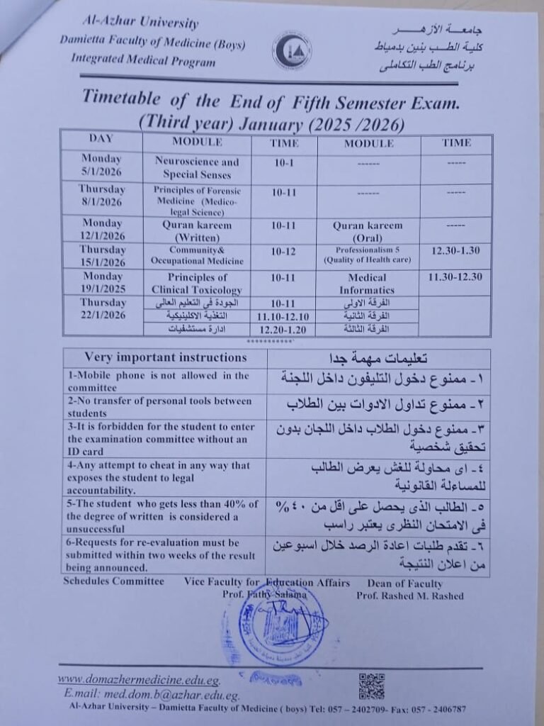 الرئيسية الطب التكاملي Fifth Semester جداول الامتحانات (5th semester)