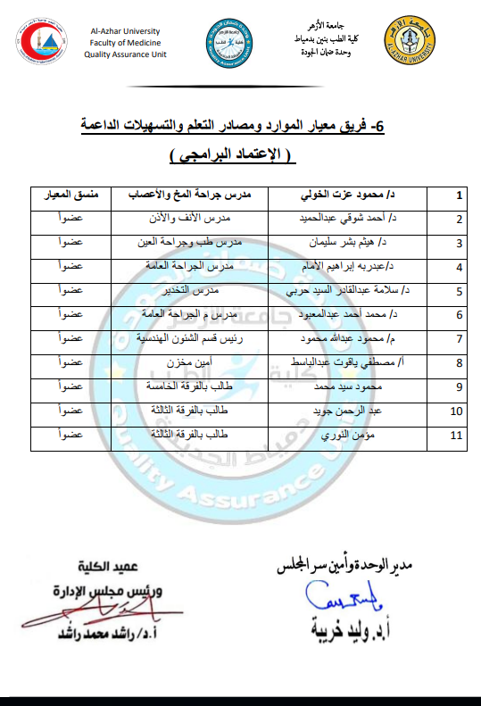 اعضاء هيئة التدريس ومعاونيهم بقسم جراحة الاوعية