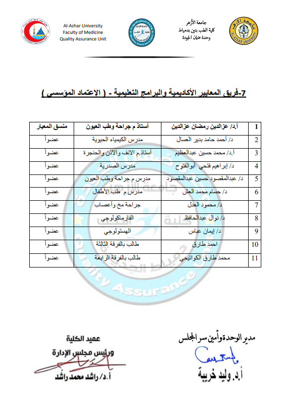 معيار 7: ضمان الجودة وتقييم البرنامج