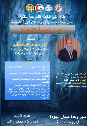 تعلن وحدة ضمان الجودة عن دورة تدريبية في إدارة الجودة الشاملة