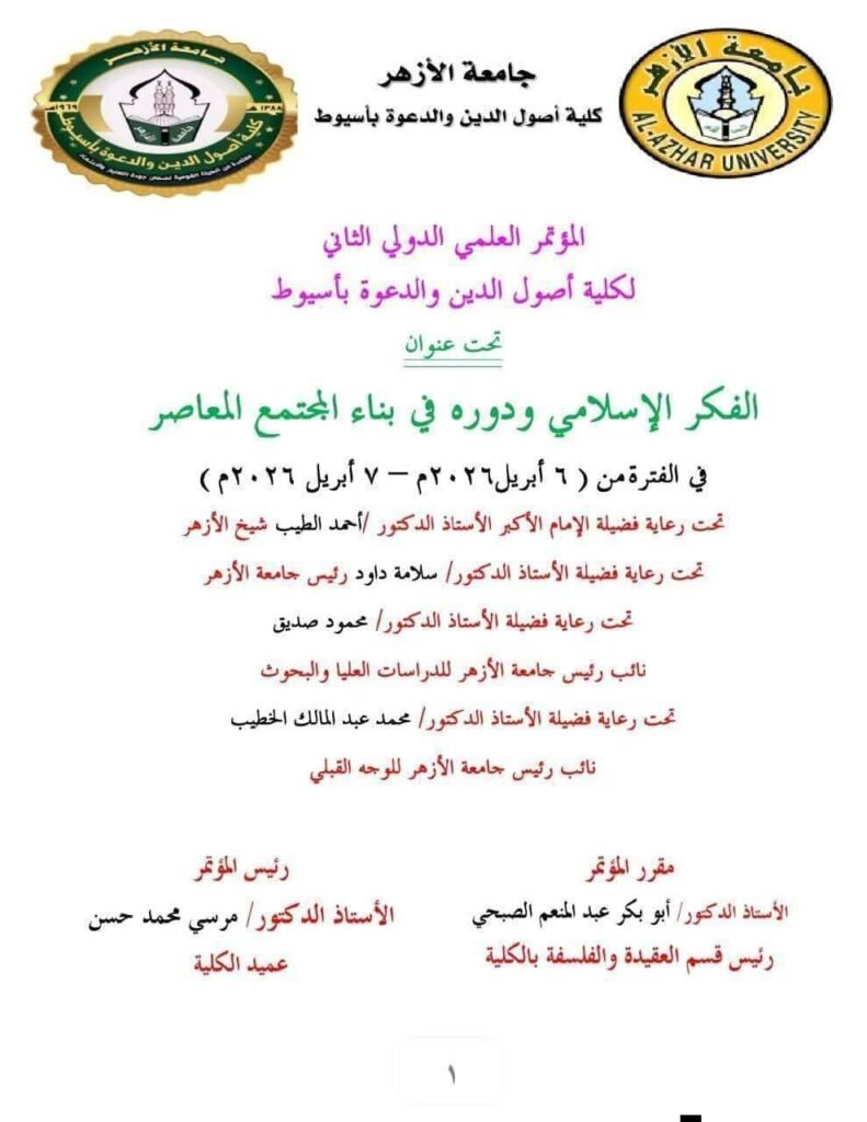 وحرصًا على بناء المجتمع في ظل التحديات الفكرية المعاصرة، تعقد كلية أصول الدين والدعوة بأسيوط مؤتمرها الدولي بين يومي 6 و7 أبريل المقبل 2026م بعنوان؛ الفكر الإسلامي ودوره في بناء المجتمع المعاصر، بهدف إبراز دور الفكر الإسلامي الحضاري في توضيح منهج الإسلام في العناية بالأسس التي يقوم عليها المجتمع الإنساني المسلم، بما يميزه عن غيره من المجتمعات الأخرى، ودعم الروابط الاجتماعية بين أفراده، ودعوته لمحبة الأوطان.