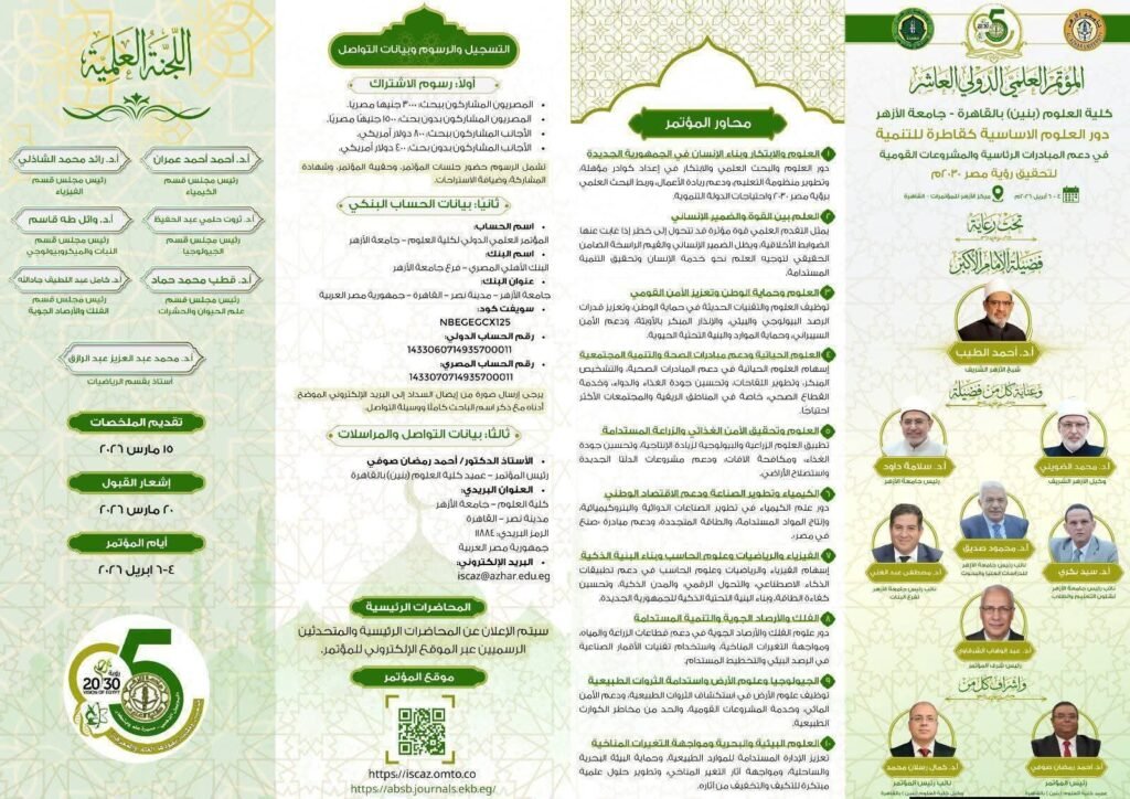 وتنفيذًا لرؤية مصر 2030 تُقيم كلية العلوم للبنين بالقاهرة مؤتمرها الدولي في الفترة من 4 إلى 6 أبريل 2026م بعنوان: دور العلوم الأساسية كقاطرة للتنمية الشاملة في دعم المبادرات الرئاسية والمشروعات القومية لتحقيق رؤية مصر 2030؛ بهدف تعزيز التكامل بين العلوم الأساسية ومتطلبات التنمية الحديثة، وفتح آفاق أوسع للتعاون العلمي بين الجامعات والمؤسسات البحثية، إلى جانب طرح رؤى علمية مبتكرة تسهم في دعم الاقتصاد الوطني وتحقيق التنمية المستدامة.