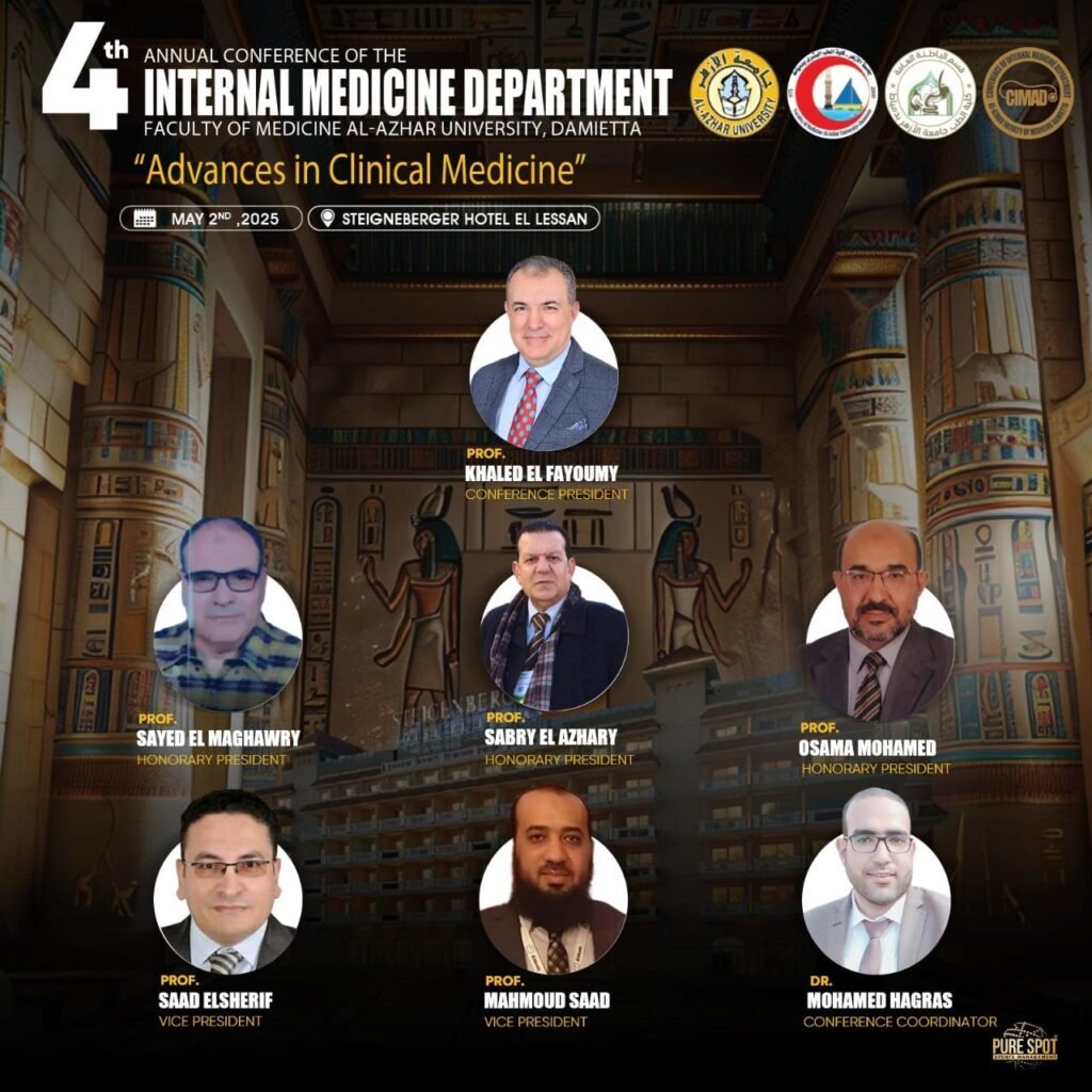 بنجاح باهر اختتمت فعاليات المؤتمر السنوي الرابع لقسم الباطنة العامة بكلية طب الأزهر بدمياط الجديدة الذى عقد يوم الجمعة الماضي بفندق شيتجنبرجر اللسان تحت عنوان “المستحدث في الطب الاكلينيكي”
