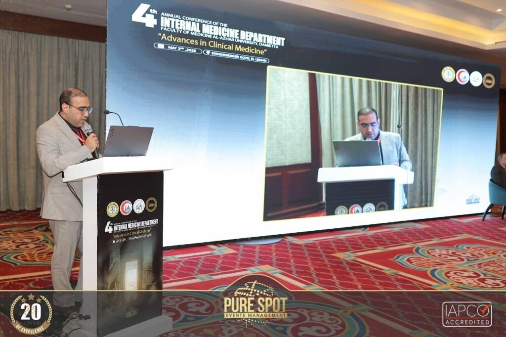 و بمشاركة نخبة من أساتذة الطب يكليات طب الازهر والجامعات المصرية واطباء وزارة الصحة افتتح الاستاذ الدكتور عصام طمان وكيل الكلية للدراسات العليا والبحوث والاستاذ الدكتور خالد ناجي الفيومي رئيس قسم الباطنة – رئيس المؤتمر فعاليات المؤتمر بحضور استاذ دكتور احمد عمران -نائبا عن مدير مستشفى الأزهر بدمياط- وقيادات وزارة الصحة بدمياط ممثلة فى استاذ دكتور أشرف العزب مدير عام إدارة المستشفيات بمديرية الصحة بدمياط