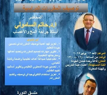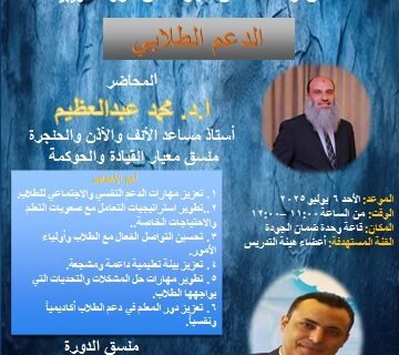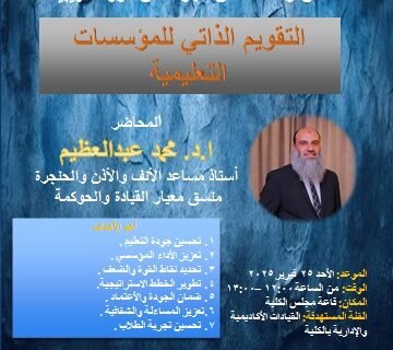 بناءًا على الخطة التدريبية للكلية تم اقامة دورة تدريبية للقيادات الأكاديمية والإدارية بالكلية بعنوان (التقويم الذاتي للمؤسسات التعليمية) المحاضر: أ.د/ ... اقرأ أكثر